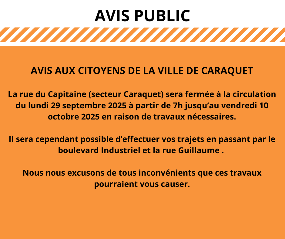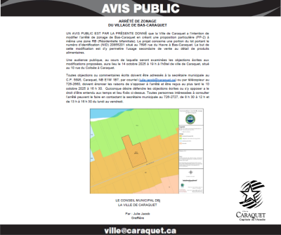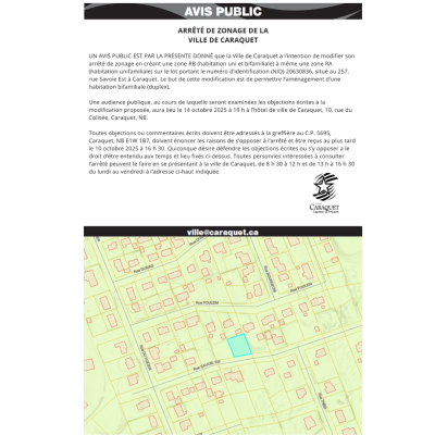 Avis public - Modification - Arrêté de zonage de Caraquet - rue Savoie