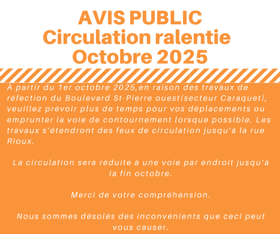 Circulation ralentie - Boulevard St-Pierre Ouest