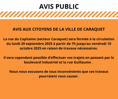 Avis public - Modification - Arrêté de zonage de Caraquet - rue Savoie
