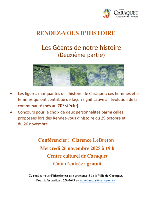 Pour information : 506 726-2727 ou rendezvous50plus@caraquet.ca